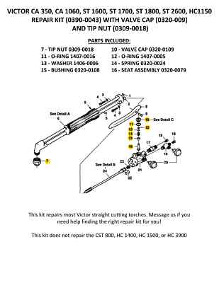 Victor Repair Kit Ca1060 1050 St900 1000 1700 1800 1900 2600 Hc Series 0390 0043 Ebay